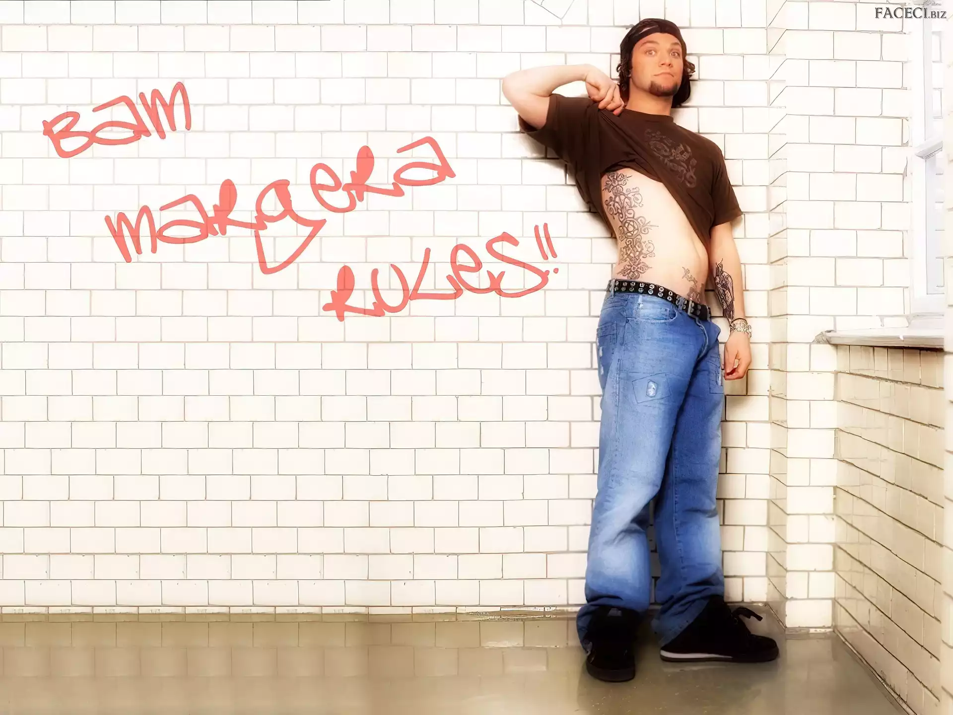 włosy, Bam Margera, ciemne kurtka, Bam Margera, rozpięta zegarek, Bam Margera, deskorolka okulary, Bam Margera, butelka okulary, Bam Margera, twarze t-shirt, Bam Margera, brązowy